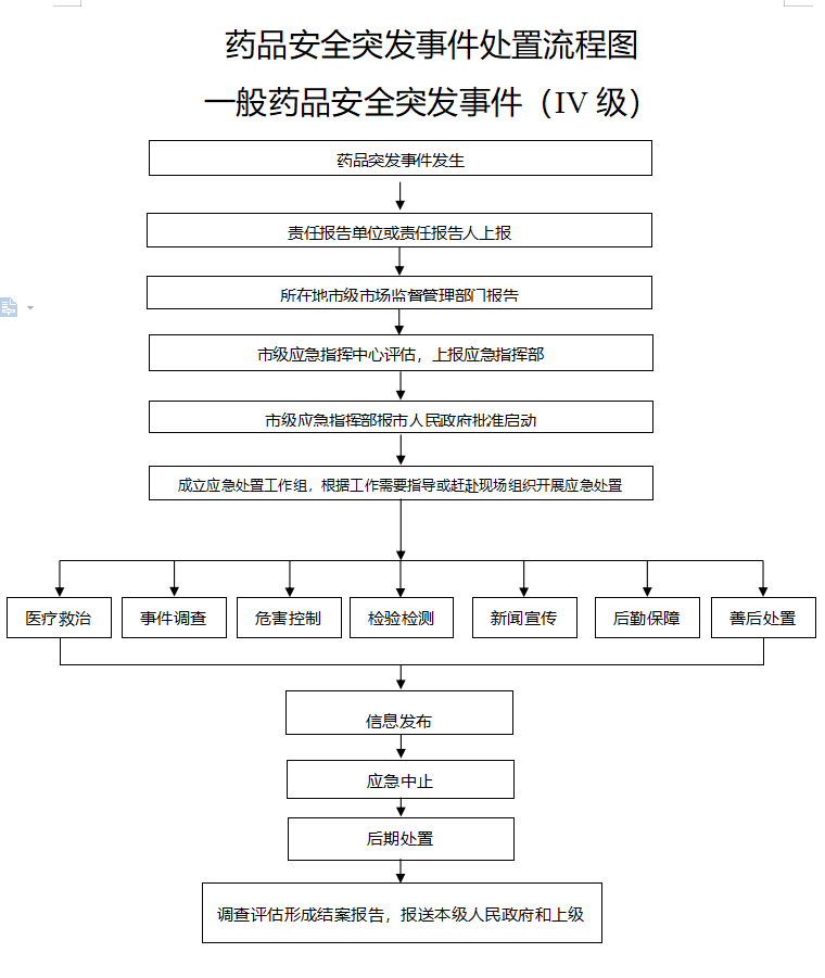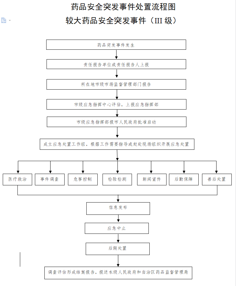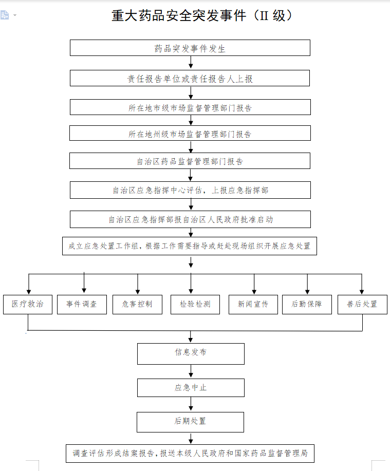 ⑵药品安全突发事件部门应急预案。主要是博乐市市场监督管理局根据同级药品安全突发事件专项应急预案和部门职责为应对药品安全突发事件而制定的预案。