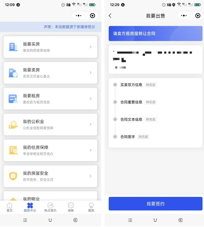 以往办理存量房交易,买卖双方需携带身份证、产权证等多项材料到政务大厅办理,从材料审核到签字确认往往需要往返多次。特别是在业务高峰期,群众经常要花费半天甚至更长时间排队等候。如今,通过新疆智慧住房小程序,用户只需完成实名认证,即可在线办理房源核验、合同网签、税费缴纳等全流程业务,大幅提升业务办理效率。