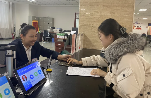 1月27日,记者在博乐市行政服务中心二楼看到,博乐市瑞达运输有限公司员工吕晗玉正在交通博阿精通办窗口办理业务。她通过 “运证通 App” 办理网上年审,根据提示输入信息、提交证明,不到10分钟就拿到了道路车辆年审电子凭证。