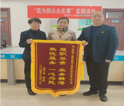 为了表达内心的感激之情,李秀玲还特意制作了一面锦旗,送到了博乐市人社局。锦旗上“履职尽责 业务精湛”几个大字熠熠生辉,这不仅是对工作人员辛勤付出的高度认可,更是对博乐市人社局“高效办成一件事”工作成果的有力印证。