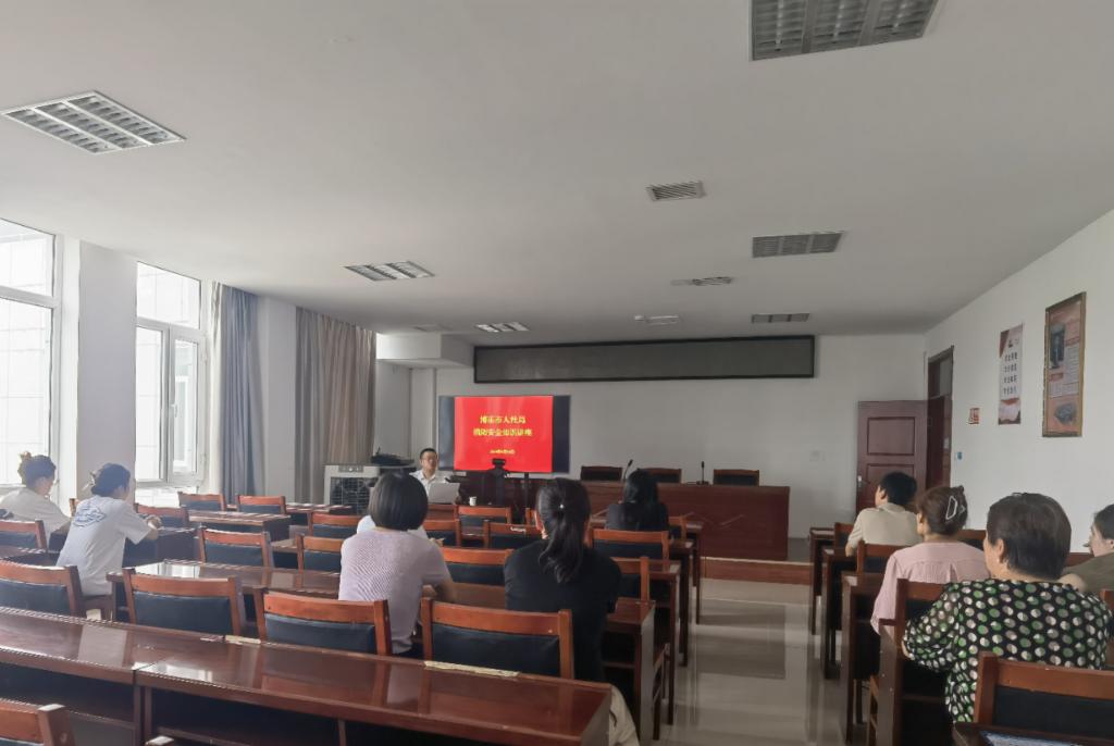 8月16日下午,博乐市人社局组织全体干部参加了消防安全知识讲座。此次讲座特别邀请了乌鲁木齐公义消防知识宣传中心主任胡鎏鑫担任授课讲师。